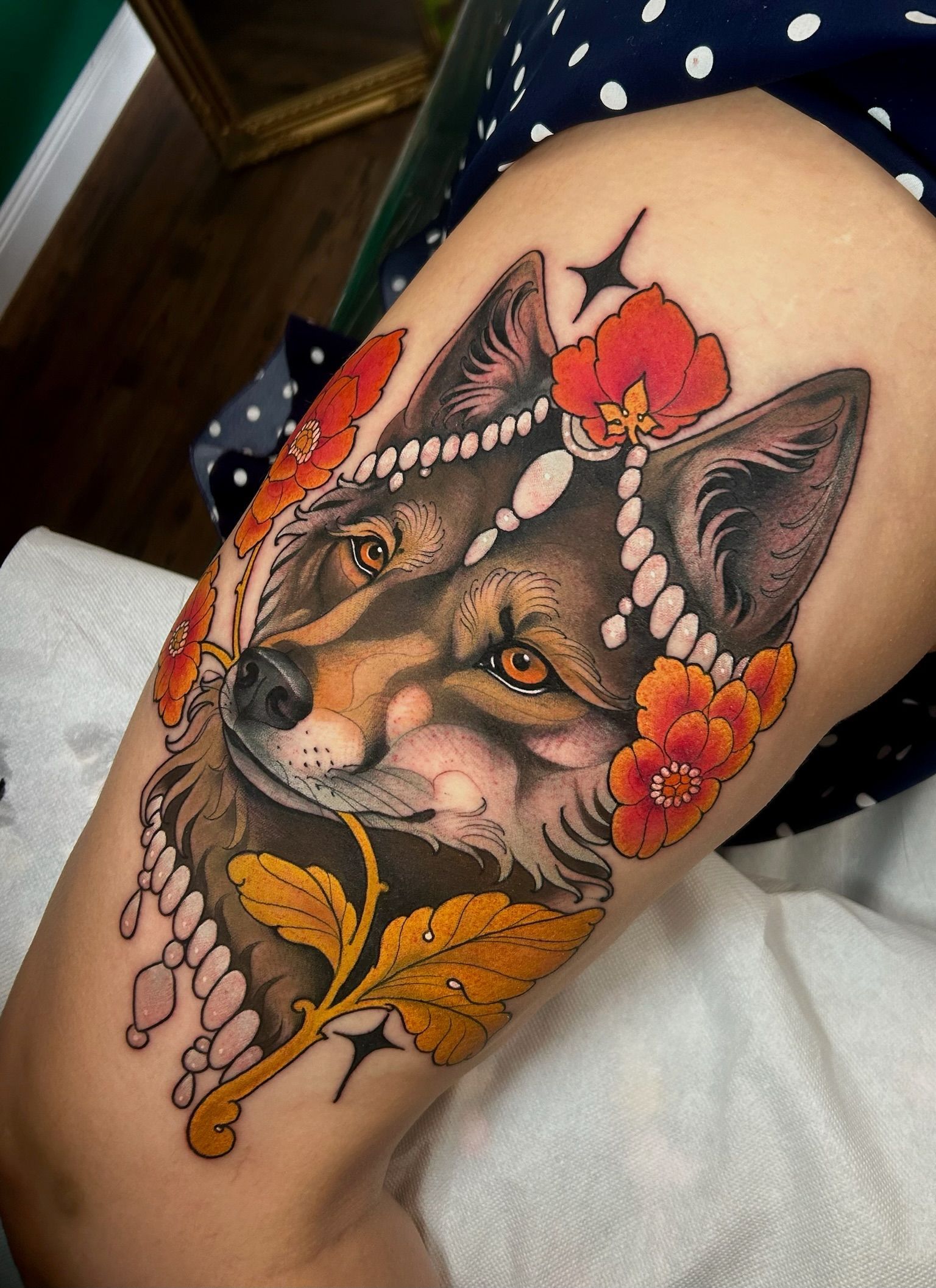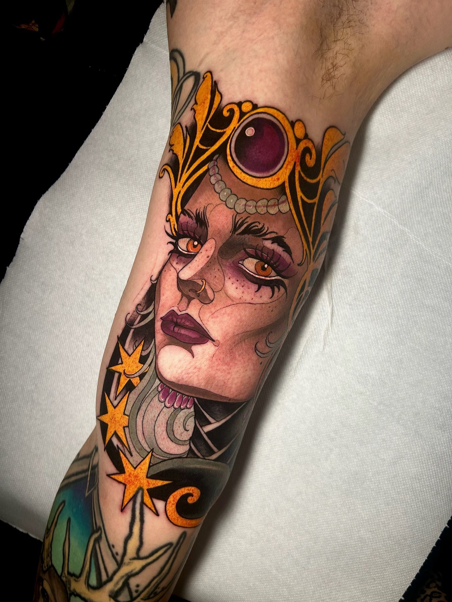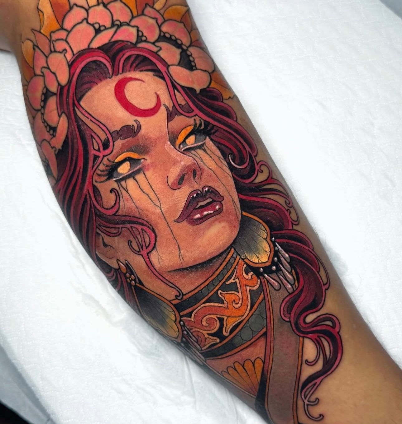 Il Neo Traditional è uno stile raffinato e ricco di dettagli, che unisce elementi tradizionali e realistici, permettendo una grande libertà artistica. Alice predilige soggetti come fiori, animali e volti umani, che arricchisce con gioielli, vestiti e ornamenti, trasformando ogni tatuaggio in un’opera d’arte unica.
