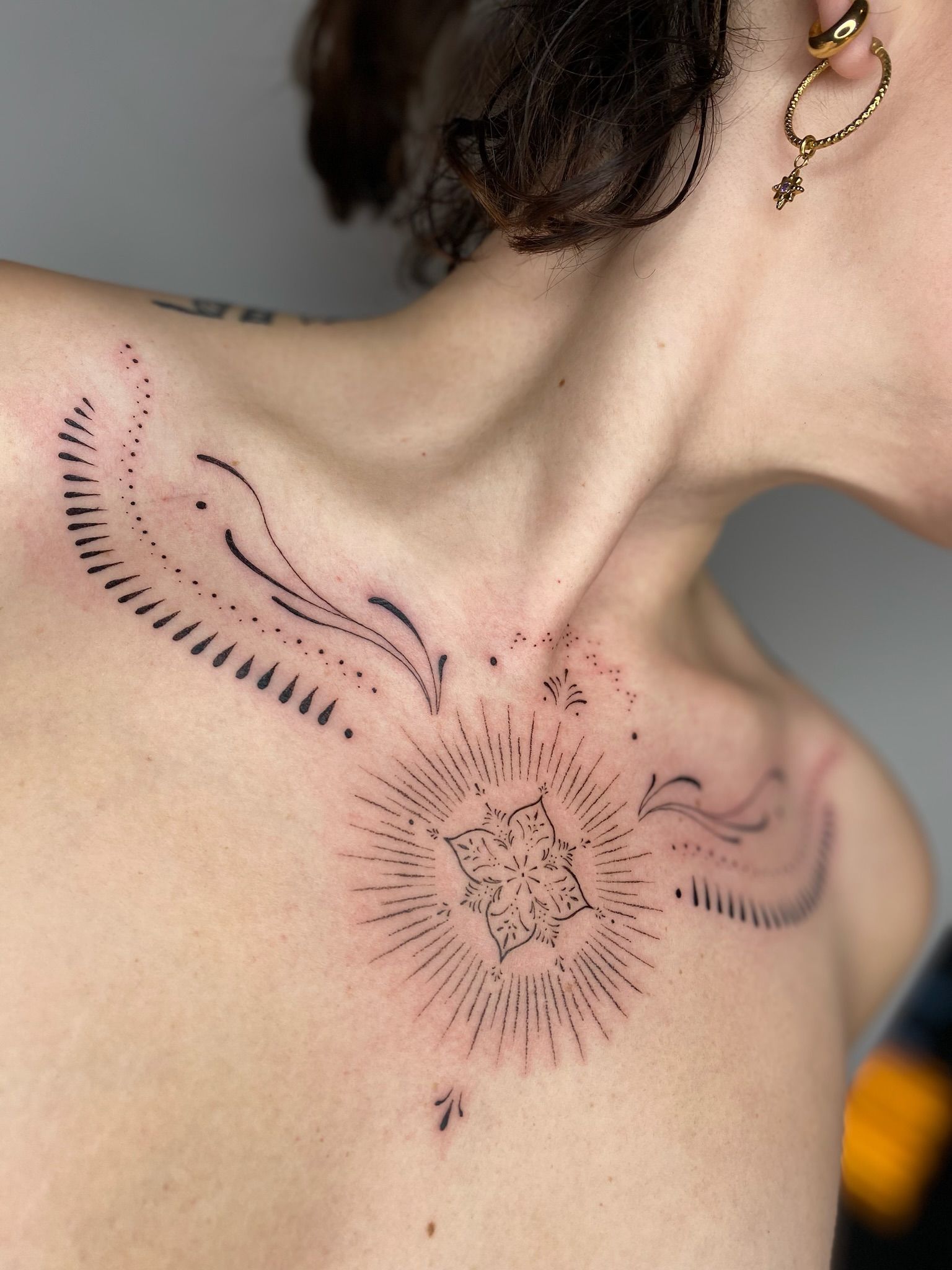 Dea, realizza tatuaggi ornamentali e filiformi che assumono la forma di segni di protezione.