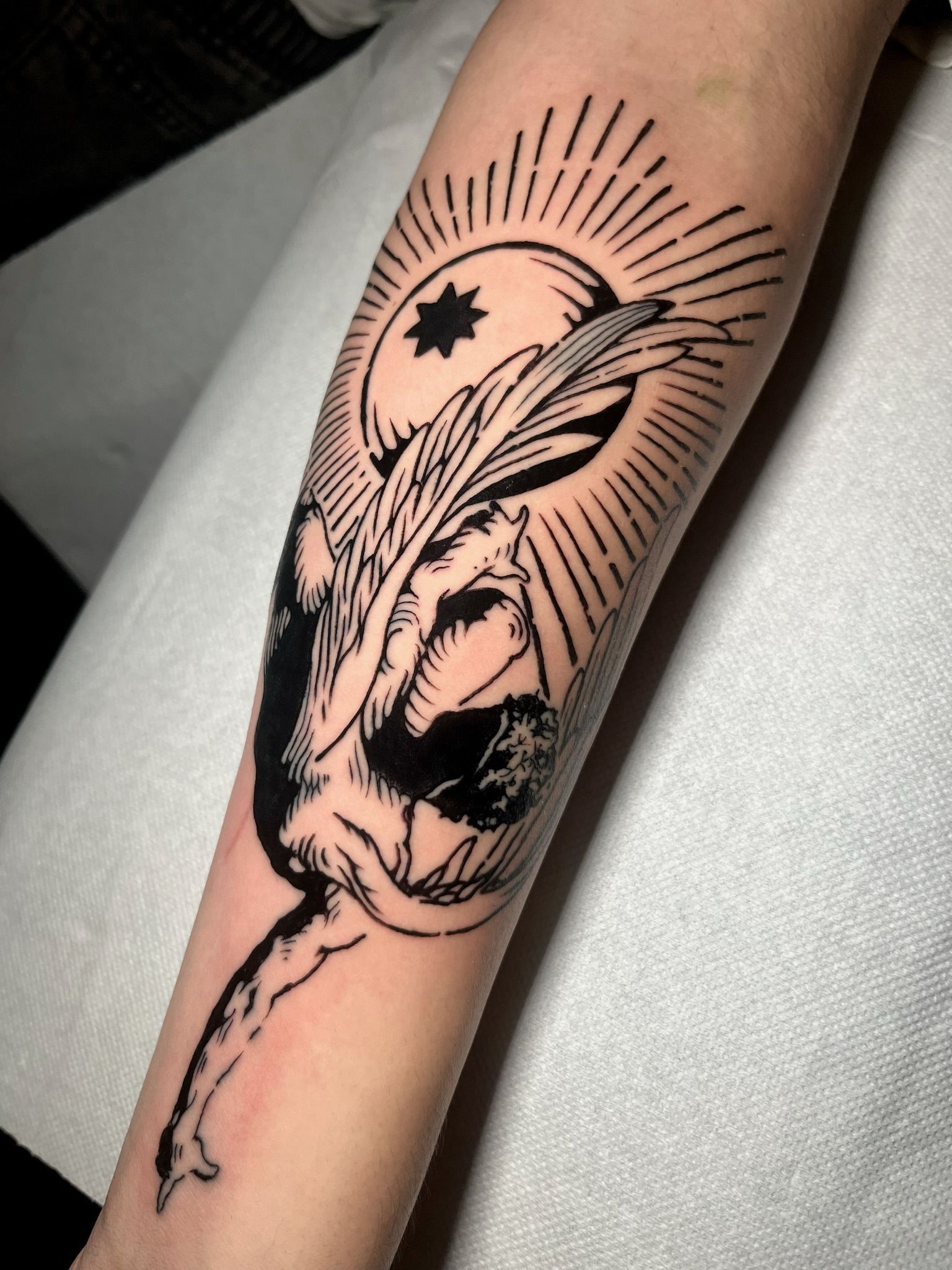 Filippo Lonfernini, disegnatore fin da piccolo, ha iniziato il suo percorso artistico con i graffiti, muovendo i primi passi nell’arte urbana e sviluppando un bisogno primordiale di lasciare un segno. Ha trovato nel tatuaggio la risposta a questa esigenza. Il suo approccio professionale unisce estro artistico e conoscenza tecnica, garantendo la massima cura in ogni fase del lavoro, dalla progettazione alla realizzazione.